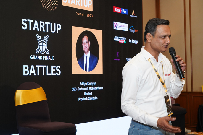 The Global Startup Battles judges were Shivam Bajaj (Avener Capital), Devesh Rakhecha, (Marwari Catalyst, Yearbook Canvas); Anup Kapadia (Maitreya Capital, TTPL), and Vipul Jain (Hearth Ventures) Out of the hundreds of entries received from across the country for Virtual & Physical Battle, only 8 startups were chosen to pitch live at the Mumbai edition. Aditya Kashyap, CEO of “Cinedubs” (Dubswork Mobile Private Limited) emerged as the main stage battle winner, it’s a software product company that specializes in mobile application-based entertainment platforms. They have invented a next-generation technology that can revolutionize the user experience while watching movies. “Cinedubs” app allows movie-buffs to enjoy movies in their preferred language at a nearby theater irrespective of the language the movie is being played in. Through the app and an earphone, cine goers can choose their preferred language and the app will sync automatically with the scene on the screen and start the audio.