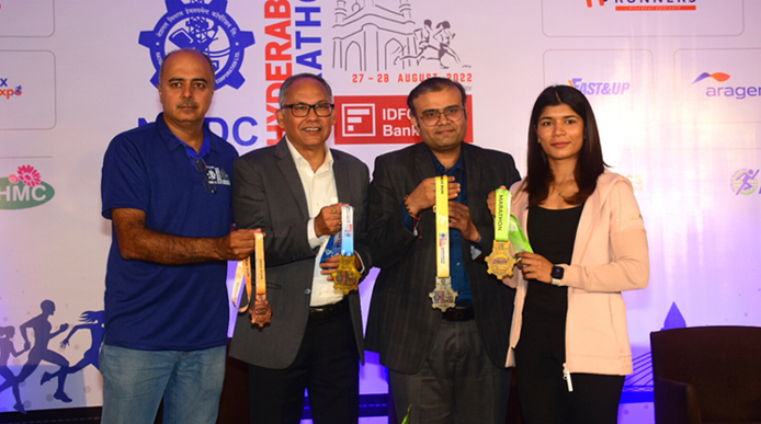 Hyderabad Runners Society unveils Finishers Medal of NMDC Hyderabad Marathon 2022