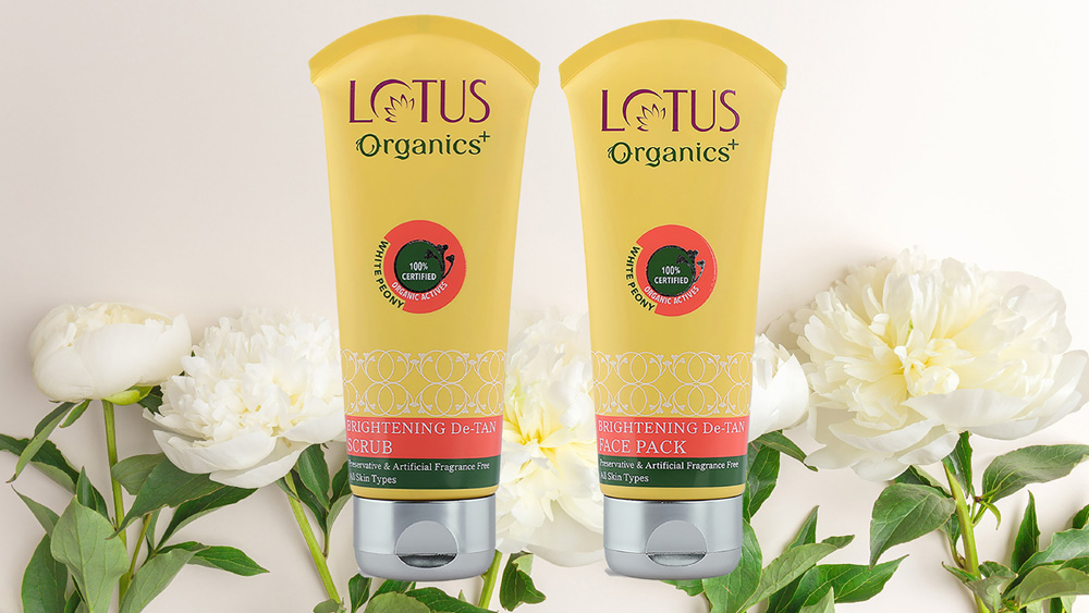 Are you wondering how to get rid of the sun’s tanning effects on your skin? Now here is the perfect remedy for your skin woes! The premium organic skincare brand Lotus Organics+ has introduced its De-Tan range of skin products that includes the Brightening De-Tan Scrub and the Brightening De-Tan Face Pack. Now experience the wonders of the De-tan scrub and De-Tan Face pack enriched with the potent essence of White Peony Flower extracts. Known in Traditional Chinese medicine as the “king of flowers”, white peony extracts works as a natural antioxidant to help boost skin clarity for visibly brighter, more radiant-looking skin. The White Peony Flower extracts possess natural antioxidants that combat free radicals, minimizing premature aging and promoting skin elasticity. Embrace the power of these wonderful De-Tan products for a rejuvenating and luminous skin transformation.